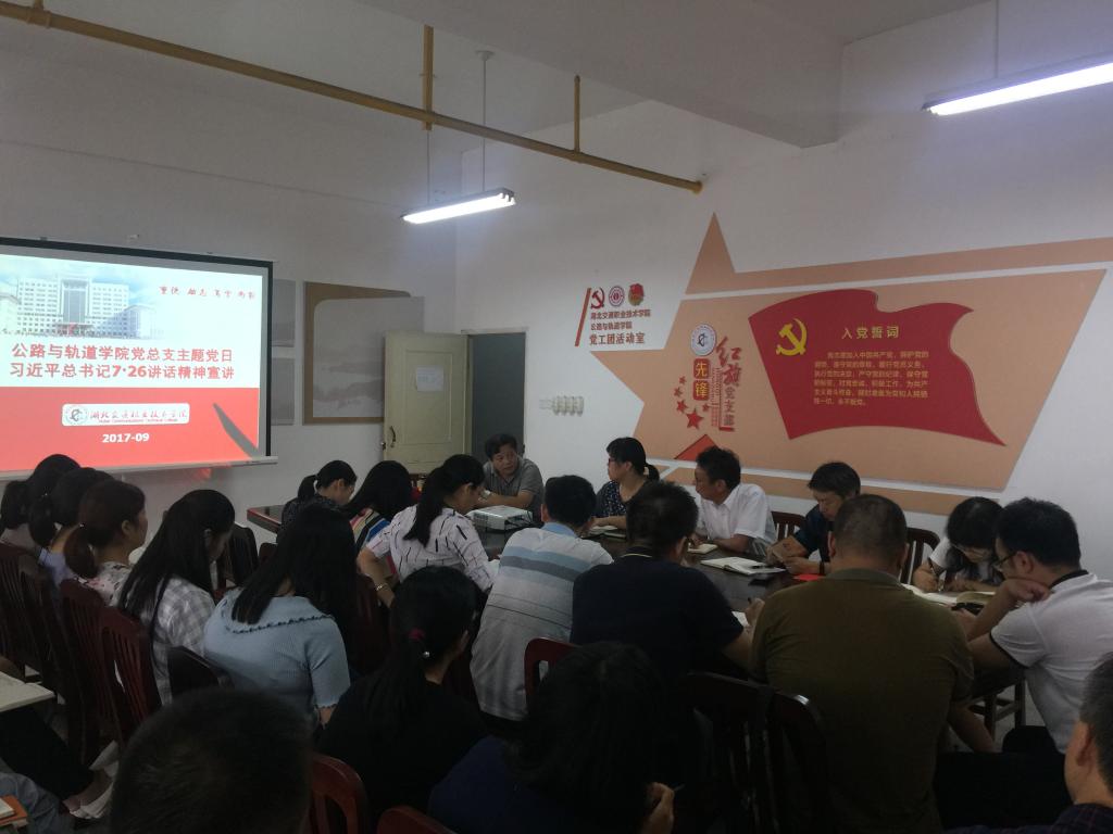 9月21日下午,公路与轨道学院党总支在党员活动室举行了“学习习近平总书记7?26讲话精神”主题党日活动。校长陈方晔同志以普通党员的身份参加了本次活动。
