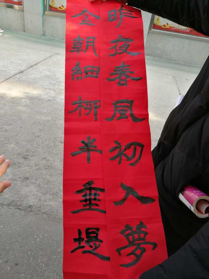 经过两周的收集与筛选,共有70余幅春联作品参加此次比赛,并于1月10、11日分别在我校宣传长廊、信息大楼前小树林进行作品展示。活动吸引了我校领导、老师、学生的高度关注,他们纷纷驻足观看。有同样爱好书法的同学在现场挥毫泼墨,并将相关作品带回寝室,给寝室添新装,更多同学则参与到了现场投票环节,为自己喜欢的作品进行投票。