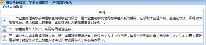 6、仔细阅读户档去向选择的“声明”,并打钩