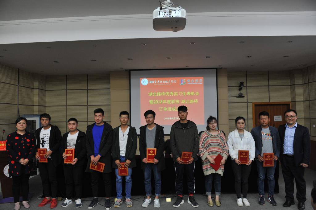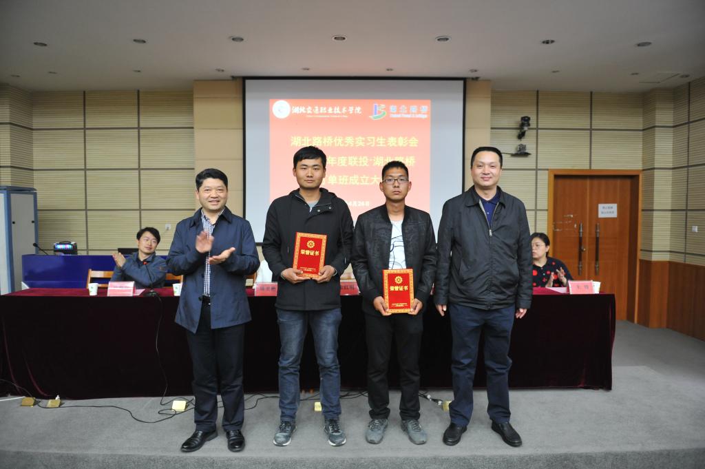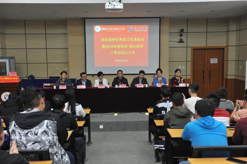 4月24日下午,湖北省路桥集团有限公司总工程师朱红明、人力资源部长陈美艳来我校出席2018年度湖北路桥订单班成立大会,并现场为我校16名优秀学生颁发湖北路桥奖学金。副校长王孝斌、相关部门负责人和学生代表参加会议。