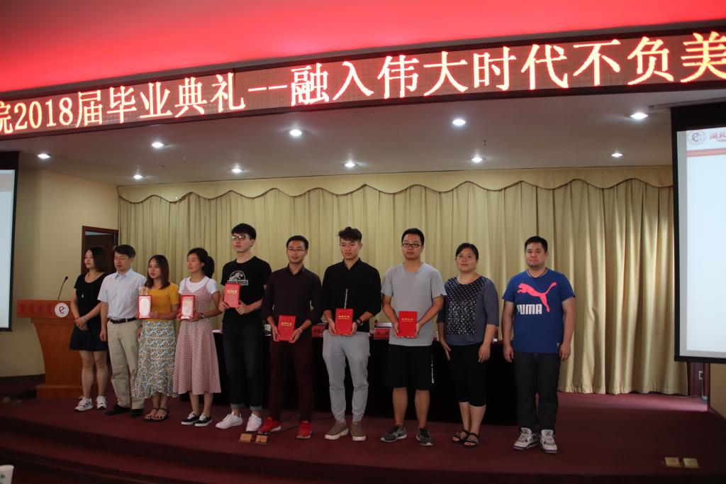 活动在雄壮的国歌声中拉开序幕。典礼上,朱婧介绍了本届毕业生的整体情况,并赞扬道大部分毕业生都从事了交通建设行业,为交通事业发展奉献了青春力量、交院力量。 杨帆宣读了《关于表彰公路与轨道学院2018届优秀毕业生的决定》,学院领导向毕业生代表和优秀毕业生颁发了毕业证书奖状。优秀学生代表朱博龙作了交流发言,他汇报了在湖交的成长与收获,感谢母校的精心培育和老师的谆谆教诲,并祝愿母校蓬勃发展、再书华章!