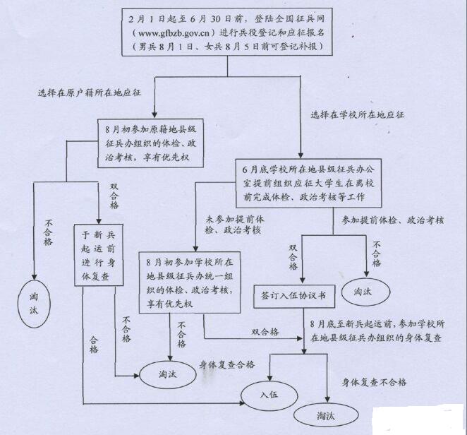 。为方便大学生应征,既可在户籍所在地应征,也可以在学校所在地参加应征,并且一般都会在大学生放假离校前完成体检、政治考核、签订入伍协议书等工作,新兵起运前只需对身体进行复查,合格的即可办理入伍手续,不会因放假返乡造成为入伍而两地奔波的不便。此外,全省各级征兵办公室为大学生入伍开辟了“绿色通道”, 优先安排大学生参加体检和政治考核,确保随到随检;对体检、政治考核双合格的大学生,优先组织定兵和公示,并结合大学生学历、专业、个人特长和参军意向,优先安排大学生到军兵种部队或专业技术要求高的部队服役。