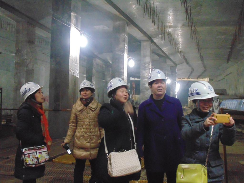 轨道交通6号线三标负责修建江城大道站至老关村站之间的车站和区间。中交一公局的项目负责人带领大家下至地下2层的岛式车站,分批参观近期始发的右线盾构机。大家详细观看地铁车站的结构及布局,认真聆听技术人员对盾构机构造、工作原理、施工步骤的讲解。大家多是第一次零距离接触盾构技术,纷纷拍照、录像,收集难得的素材。回到会议室观看完项目部精心制作的施工动画,已近晚间7点,天色已黑。